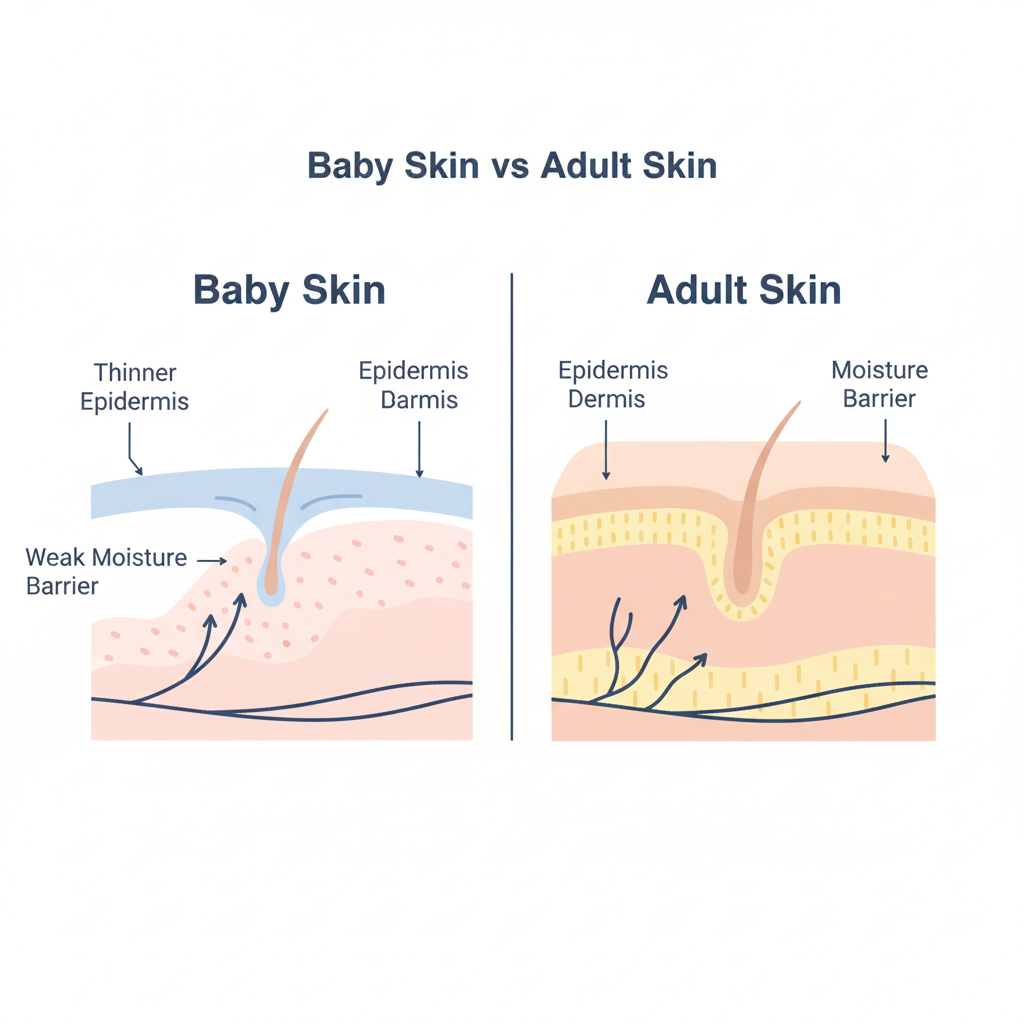 신생아의 피부는 성인보다 약 30% 이상 얇고 수분 유지 능력은 절반 이하입니다.