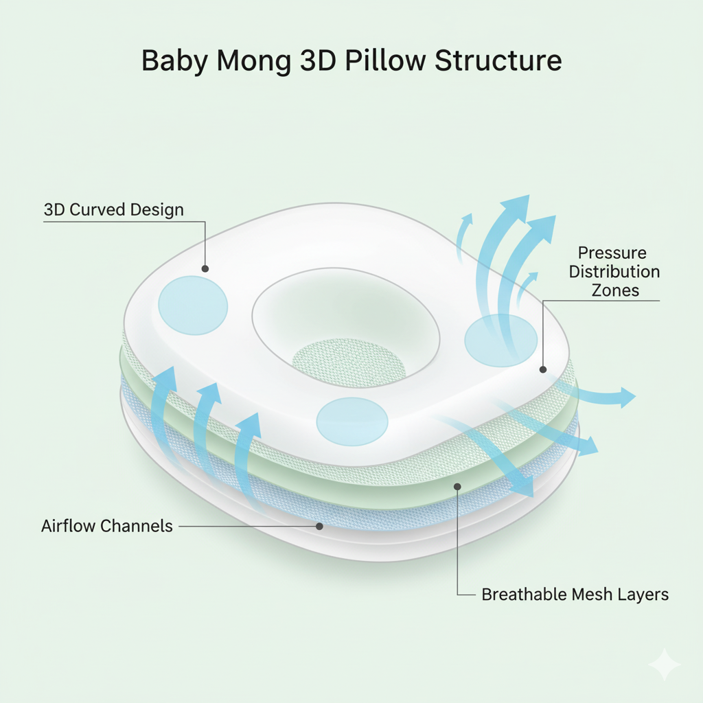 “3D 입체 구조는 압력 분산에 효과적이며, 뒤통수 변형 예방에 도움을 줍니다.”